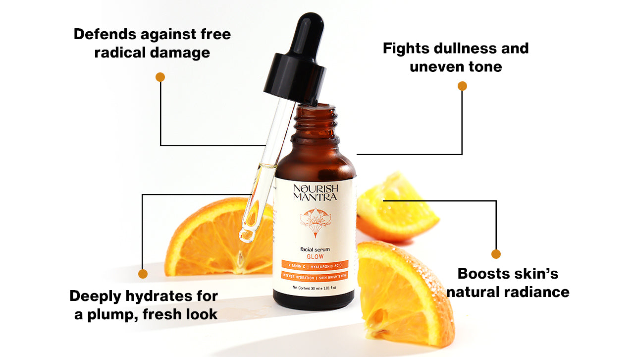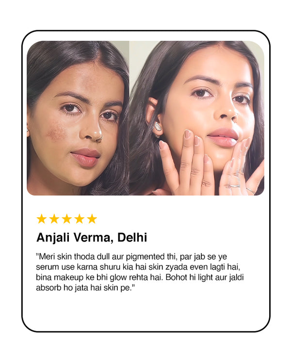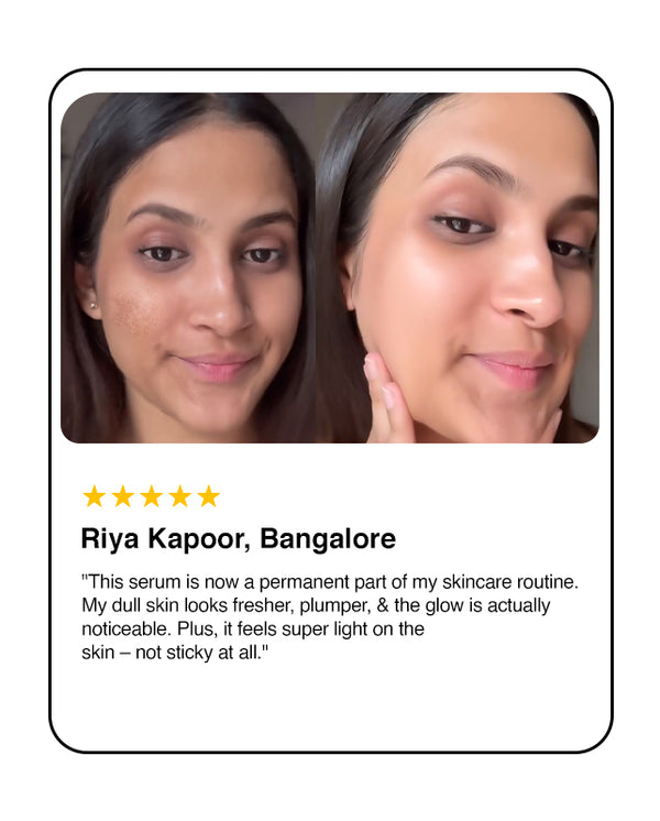 Radiant Glow Serum is a powerful yet lightweight formula crafted with Sciyurveda™ technology, a perfect blend of modern science and Ayurvedic wisdom. Enriched with Kakadu Plum, Vitamin C, and Hyaluronic Acid, it hydrates deeply, evens skin tone, and revives dull, tired skin. Kakadu Plum, nature’s richest source of Vitamin C, helps fade dark spots and boosts collagen, revealing a natural, radiant glow. Gentle, effective, and 100% vegan & cruelty-free — it’s skincare you can trust, every day.
